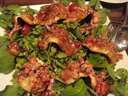 恵比寿のカフェ。初めておじゃましましたが、けっこう広くて、みんな思い思いにくつろいでます。1人で読書や、PCを見てる人も。軽く夕食をいただきました。 ほたてと春野菜のテリーヌ。おいしいのですが、ソースがかかりすぎていて、そのソースがちょっと味が濃すぎます。それから、水菜とベーコン、温泉卵のサラダ。ベーコンなど素材はよさそうですが、ドレッシングがすっぱすぎ。でも、ここ、量が多いです。3,4人で分けて食べるにはちょうどいい感じ。2人だとちょっとあきます。 桜海老とたけのこのクリームパスタと、ペスカトーレの焼きリゾット。春らしい素材のパスタで、もう少し味付けを上品にしてくれたら、とてもおいしいのですが・・・。焼きおにぎりのようなリゾットにペスカトーレのソースをかけたもの。香菜がかかって、これもなかなかいいのですが、やっぱり少し辛い。 最後のいちごのティラミス。これは文句なくおいしかったです。お店の人の感じもサービスもいいのですが、また食べに来たいとは思えず。2人で1万円ほどかかりました。お値段はけっこう高いです。