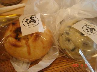曙橋に行ったついでに、かねてから行きたかった「満」で、ランチのパンをゲット。 買ったのは、この2つ。 これはなんと角煮パン。フランスパンの中に角煮が入ってます。ちょっとおもしろいですね。200円。でもやっぱり、ちょっと脂っぽいかも。 塩豆あんぱん。180円。白いもちもちパンの中には粒あん、表面に黒豆がいっぱい。これは、おいしい! 大好きな味です。甘い粒あんと塩味の黒豆、それに本当におもちのような白いパンがよく合ってます。また買います。