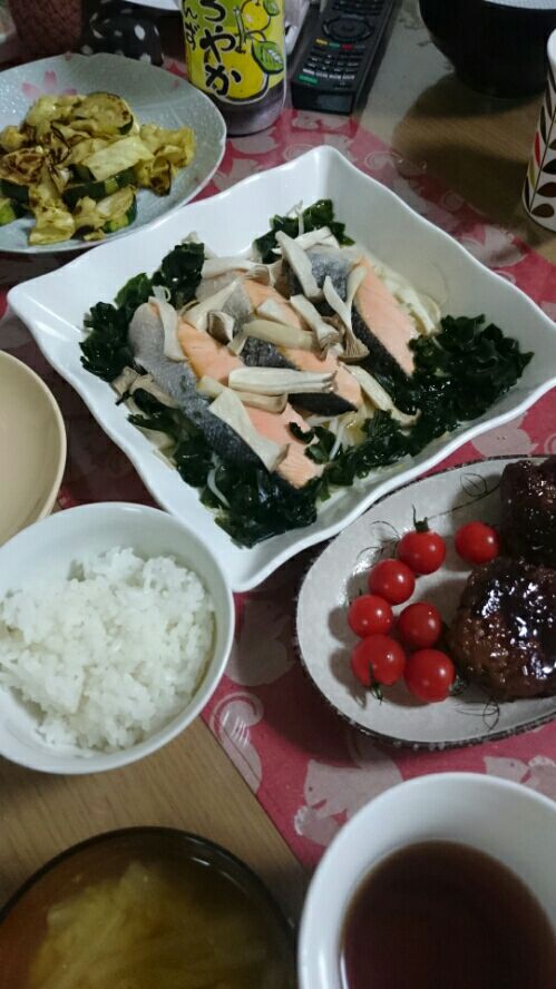 時間がないときにぴったりのレシピ。 クックパッドで見つけました。 洗い物も少ししか出ないし助かる~。 鮭のレンジ蒸し 冷凍保存してたハンバーグ キャベツとズッキーニのカレー炒め