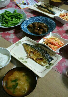 今日は2時と5時にお客様があり、夕飯作る時間がとれず、適当なものになりました。 塩さば コチュジャン入り味噌汁 マカロニサラダ 枝豆 ミートボール トップバリュの照り焼きミートボール。懐かしい私の好みの味です。
