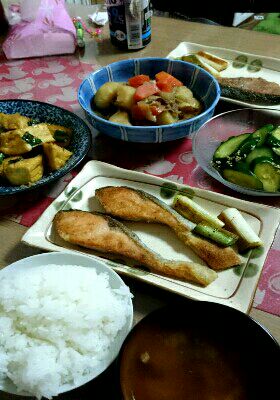 2月11日 肉じゃが 鮭のムニエル きゅうりの漬物 厚揚げの味噌炒め ご飯 味噌汁 肉じゃが、きゅうりの漬物は朝作りました。 厚揚げの味噌炒めはあまり美味しくなかった。厚揚げの美味しいレシピ何かないかな。