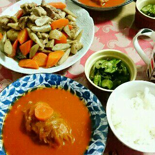 3月23日 ビーフシチュー 人参サラダ サラダ いつもは豚で作るけど、今回は牛(笑) 3月24日 アジの煮付け 麻婆豆腐 ぬた 味噌汁 アジの煮付けは初めて。 麻婆豆腐は甘口だったのでコチュジャン足してみました。