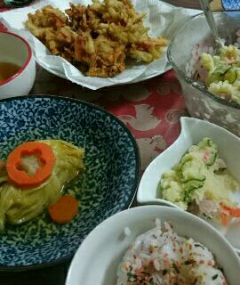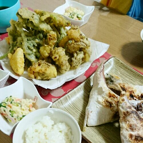 3月28日 天ぷら(アイスプラウト、まいたけ、チーズ、ピーマン) ポテトサラダ ブリかまの塩焼き 天ぷらをするとどんどん具材が増えて大量になる。 次の日のお昼は天丼にしました。 3月29日 照り焼きチキン ポテトサラダ 味噌汁 ご飯 美味しい照り焼きでしたが、手間がかかる(^_^;)