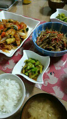 3月9日 揚げない酢豚 セロリのニンニクソーセージ和え きんぴら ご飯 味噌汁 ひっさしぶりの酢豚。 楽天レシピから探して作りました。子供も食べてくれた。 セロリはこのレシピ見つけてからはずっとこれ!!かなり美味しい♪ ポトフと野菜スティックぐらいしか出番なかったけど、我が家の定番になりました。