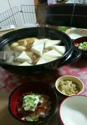 昨日はおでん。 前日の夜から仕込み。 献立 おでん キャベツのゆかり和え マグロの漬け丼(コープの冷凍) おでんだけだとご飯が進まないから、どんぶりにしてみました~。 キャベツのゆかり和えは簡単で美味しいから大好き♪