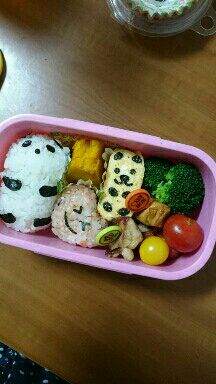 今日は娘の遠足 季節感のある可愛いお弁当をと考えたけど、無理。 結局、パンダ(笑) パンダに見えるといいけど。 おかずは卵焼き、焼き鳥、かぼちゃの煮物。何を入れようか毎回悩む
