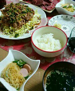 ちょっと週末の食べ過ぎからおかず少なめです。 豚肉の甘酢ネギだれ 春雨サラダ わかめスープ 一ヶ月の息子の寝てる間に料理ってけっこう大変。