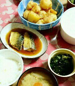 3月17日 さばのおろし煮(コープ) じゃがいもの煮っ転がし 豚汁 きゅうりとわかめの酢の物 ご飯 じゃがいもが大量にあったので、里芋の煮っ転がしのじゃがいもバージョン。 子供にこれ食べてと言ったら 「味噌汁にもじゃがいも入ってるから」と拒否された。 恐るべし3歳児の言葉。