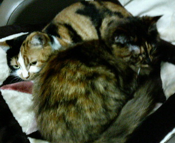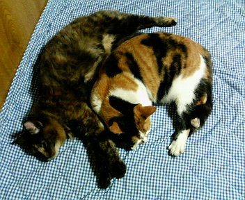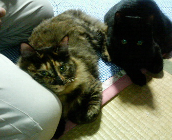 何日か前、年末年始の特別番組は嫌い、って日記に書いたけど撤回見たいドラマが3本もある(*^_^*)「里見八犬伝」「古畑任三郎」「新撰組」楽しみ~(^^)v今日チャックンが久し振りに脱走した(>_<)20分程で遊び疲れたかおなか空いたか一人で心細くなったか、玄関前にちょこんと座ってた帰ってきて一安心チャックンとママちゃん昨夜見た夢、変だったなぁママちゃんが人間の言葉を喋ってた ahiruはそのママちゃんと普通に会話してた何を話してたのか覚えていないけど普段買い物に行くような場所に二人で出かけてたでもやっぱり夢道が普段と微妙に違う夢の中でも「あれ?こっちで合ってるハズなのに何で着かないの?」って(^_^;)朝起きてママちゃんまさか!?って一瞬思ったけど「ニャー!」って朝ごはんの催促されたママちゃん「私は人間語は話さないわよ~!ニャー♪」