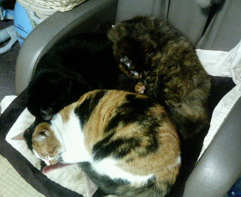 この前からの念願の掃除を少ししました!(^^)!布団乾燥機もしたし毛布やシーツ、掛け布団カバーも洗いましたあーすっきり! って言っても今日掃除したのは ahiru-父の部屋だけ・・・(-_-)毎日ちょびっとずつやっていこう\(~o~)/今日のにゃんさんチャックン、ママちゃんより大きくなった?!ねぼけてる(^_^;)