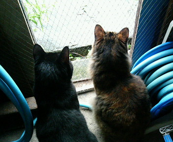昨日から引き続き怪しげな空模様…はあまり降りませんでしたがずっと空そのせいか何だか蒸し暑くてでもにゃんさん達はみんな元気です物置の網戸の隙間から外の景色に興味津々です最近は少し涼しかったので1日に飲む水分量が減ってきてたのですが今日の暑さはさすがに… と の2本飲んでしまいました