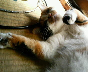 大変な事になってきました 「仮面ライダー カブト」謎が解けてるんだか増えてるんだかひよりと天道の関係、ひよりがワームなのは解ったけど鉄仮面のオトコは天道???何でエリアXのドアを開けたら砂浜?前々から気になってた天道のおばあちゃんって何者???わからない事だらけだ…早く来週にならないかな復習する? 今日のにゃんさん 今日はあまり暑くないので見てても暑苦しくないなぁ