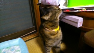 最近りんは昼型になって、夜は7時くらいから朝5時まで大体寝てるので、昼間元気一杯です。一日走り回っているのでうるさいよ。「ここ開けて」、「ここも開けて」と要求がうるさいよじゃあね