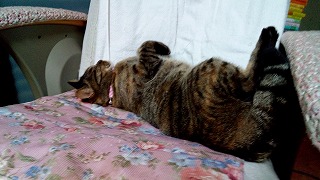 ミイは、兄弟猫が来た日だけ2階のロフトベッドにいたけど、いつもは爺さんの所で寝てるみたいよ。ただし、寝るまで下の和室にいて遊ぶらしく、朝見るとカーペットはめくれ、先日は仏壇の上がクシャクシャでした。<猫ちゃんたちにとっては仏壇の上も遊び場。りんちゃんもよくのってました(最近はのらない)> 困ったことですじゃあね