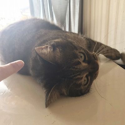 ここ数日、かあちゃんの娘が帰省してました。 今日と明日はかあちゃんのメールじゃなく、その娘が書きたいと思います。 まずは、すっかり年上姉ちゃんになったりんちゃん。 〈また来たにゃ〉 私が別の部屋に行くと、すかさずかあちゃんに甘えに行きます。 〈甘えて撫でてもらうのが日課にゃん〉 〈目を見て話しかけて来ます〉 〈ちゃんと会話が成立するにゃん〉 貫禄が出てきたけど、私にも撫でろとかわいかったです。 今までゴワゴワ毛でしたが、なぜかアイのように軟らかい毛質になってました。 次にアイちゃん。 とにかく私の顔を見ると逃げまくります。 〈あんた誰やねん〉 相変わらず、クロとは仲良し。 〈気が合うにゃん〉 なぜかドライヤーの音がするとすぐに走ってきます。 〈終わるまでずっと見てるにゃん〉 アイを探す時はドライヤーという芸が増えていました。 りんと同様、私が席を離れると、かあちゃんのそばに寄ってました。 〈私も甘えたいにゃん〉 お次はクロ。 前に会った時はまだ野良時代の面影がありましたが、今ではすっかり甘えんぼうになってました。 かあちゃんの足元にすぐゴロン。 〈どうぞにゃん〉 足で撫でてほしいのです。 ちなみに、りんもこの足をすると飛んで来ます。 (高さがちょうどいいにゃん〉 5ニャンズの中で、一番かわいい声です。 〈キャーキャー言いながら甘えるのが好きです〉 最後はしつこいと言われるほど、何度もゴロンと寝ころがってました。 〈初めはアイと一緒に逃げてましたが、すぐに逃げなくなりました〉 明日に続く。
