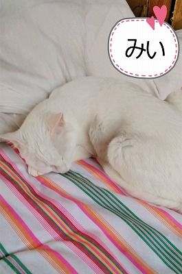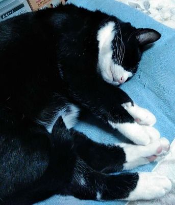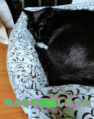 今、猫どもはみんなお休み中 クロが、今までしつこく付きまとっていました 足を甘噛みしてうるさかったけど、やっと諦めて寝に行きました。 ふふふふ😛 じゃあね