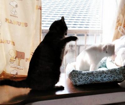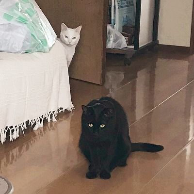 夜はミイは、風呂場や下の廊下でうろうろしているわその後、猫ベッドに寝に来ます。下に行って風呂場の窓から外を見たり、台所から外を見ているのよ。ミイとクロは、性格的によく似ているよ<やることが似ている白黒コンビのツーショットです>じゃあね😁😸😸😸😸😸😸