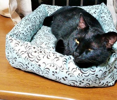 今日も猫ベッドの取り合いです。 写真は、クロが漁夫の利で寝ているところよ <ミイと同様ワル顔です> りんは机の猫ベッドを自分の場所と思っているらしく、ミイがいても怒るし、さっきはアイがいて、りんから喧嘩を吹っ掛けました。 結局アイが降りて、しばらくりんはいたけど、隣の部屋のもうひとつの新しい猫ベッドに行き、その後をクロが寝ています アイがうろうろしていたので、私が「隣においで」と言ったら、クロが甘えた声で来ようとしたので、「いいの、あなたはそこにいなさい」と言ったら、またちゃんと猫ベッドに寝たわよ。 こっちの言ったことが、分かったのかしら じゃあね😁😸😸😸😸😸😸