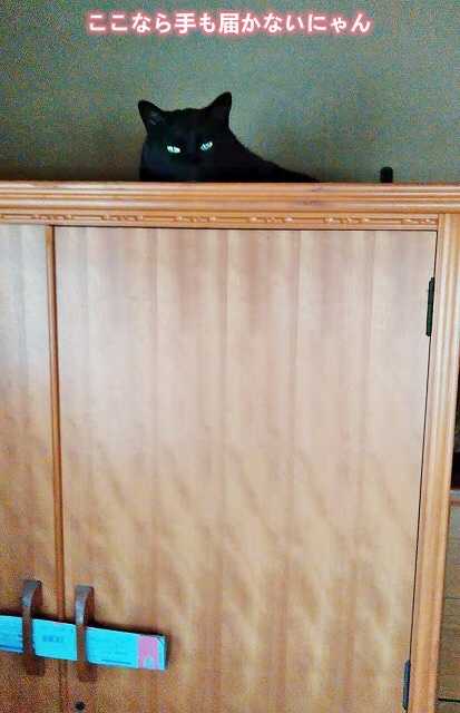 今朝、起きてみんなにご飯をあげたけど、クロがいないしばらくどこかに潜っているかと思っていたけど、ミイも食べに来ない昨晩は暑くて、窓を夜中に開けたのよ。まさかと思って見たら、1か所少し開いてるのよ。2階だけど、いつもは開かないようにしていたのに、私が油断していたのよクロは小さいときに、窓から屋根に下りたけど地面には降りられなかったのに、今回は降りたのよ夜中は部屋で声がしていたから、明け方降りたのね。ミイもかと庭を見たけどいないあの臆病な子が遠くに行くはずないと探したら、押し入れにいたわクロはずっといなくて、5時過ぎに戻ったよでも、まだ入りたくなくて、門の上で寝そべって入らない。私が抱き上げて中に入れたのよ。逃げ遅れて、すぐ捕まったわ家の中に入れてから、体と足を拭こうとしたら、逃げ回り、洋服ダンスの上に逃げて見下ろしているのよ。ふてぶてしいでしょう? 本当に腹が立つほかの子たちが玄関に行かないようにあちこち閉じ込めていたから焦っているのに、気楽そうに寝そべって怒れちゃう。「お婆さんなんかに捕まらないよ~。へん」っと逃げたけど、私だって負けてないよ~今降りて来て、私の側をすり抜けようとしたのを捕まえたわよそれでも体を拭いている間、おとなしくしてたわよじゃあね😁😸😸😸😸😸😸