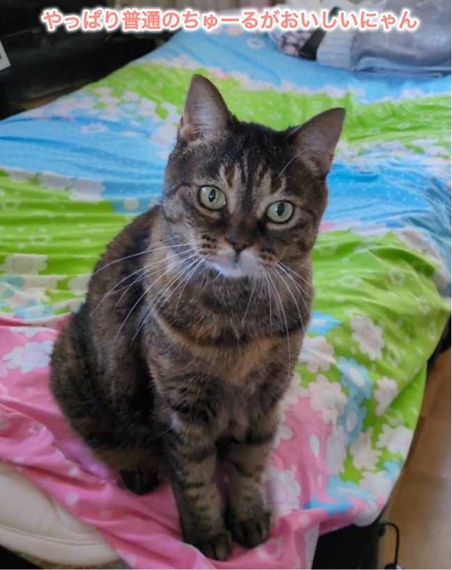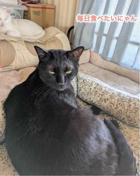 今、居間のソファに座っていたら、リンが来て「撫でて」と催促しています😊 今日はリンミイは総合食のチュールにしたら、リンは食べない。 ミイは喜んで食べたのに。 若い2人はチュールで、しかも好きなマグロなのに、クロベエは食べない😤 そのあと、リンはクロベエが残したチュールを食べたわ。 分からん奴たちじゃ😆クロベエは、缶詰が食べたいのよ。缶詰なら、みんなの残したのを探して食べてるもの。チュールだって、嫌いじゃないはずよ。食べる時もあるんだから。でも、いつものカリカリご飯は、しっかり食べるからね。ミイみたいに、ちゅーるを見たら何でも食べる子もいるのにね。やはり時々にして、特別感を出さないといけないかも😜ミイは総合食チュールでも、普通のチュールでも、缶詰でも、何でも食べる良い子よ。缶詰はアイは食べないから2つを3人で食べるんだけど、リンミイは半分ずつでちょうど良く、クロベエも1個を見事にみんな食べたわ。クロベエはまだ若いしね😊アイは、カリカリのオヤツで満足そうよ🤗満足そうに、顔を綺麗に撫で回しているわ🤗私は頭と肩のマッサージをしてもらってきました。少し体が軽くなったような気がします😛1ヶ月に一度はやってもらおうと思っています。お喋りおばさんからまた電話が来たので、近いうちにサイゼリアかジョイフルに行くことになりそうだわ😆今日は唐揚げとほうれん草の卵炒めとトマトに果物でした。じゃあね😁😸😸😸😸😸😸