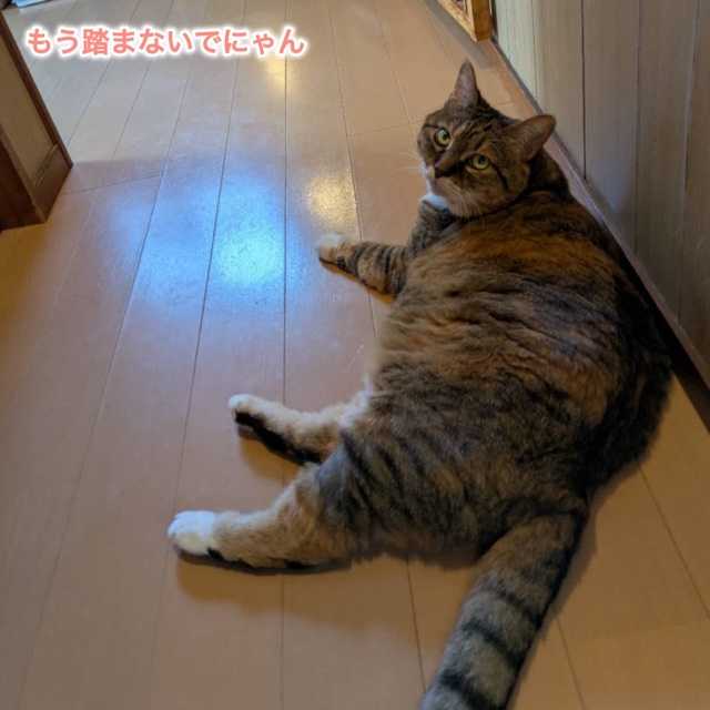 今日、クロベエとリンが一触即発で叩き合うかと思ったけど、リンがさっと離れたわ。さっき、階段だけ明るくて下の廊下が電気をつけてなくて真っ暗だったのよ。下に降りようと階段の一番下に足を降ろしたら、ギャッと言う声と柔らかい物を踏んだ感覚で、びっくりして急いで電気をつけたら、4人全員びっくりしたような顔をしてみんな揃って私を見ているのよ🤭痛そうにして歩いている子はいないし、みんな他人事のような顔をしているのよ。本当にびっくりしたわ🫢でも大したことなさそうで、良かったわ。やはり家の廊下は、いつも電気を付けていなくては駄目ね🤭みんな同じ表情で私を見てたのよ。踏まれたのは誰か聞いて回ったけど、反応なかったわ😆みんなにごめんね、ごめんねと謝って歩いたわ🤭みんな何ともない顔をしているから、分からないのよ。普通痛ければ舐めているけど、それもなし。その後も、廊下や洗面所や居間のソファにみんなそれぞれ寝そべって、私を見ているのよ。どこか痛いところ無い?と聞いて、足や手を触ったりしたけど、うるさそうにしただけよ。触っても、別に怒りもしなかったけどね。でも本当に、踏まれたのは誰だったのかな。アイかな?と思うんだけどね。いつも廊下にクロベエと2人で寝そべっているからね。踏まれた時点で、そこにいないわよ。さっと移動するからね。クロベエは踏まなくても、大袈裟に鳴いてるからわからないね。踏んだといっても、全部の足で力いっぱい踏んだわけじゃないからね。踏んですぐ足をあげたから、大したことはないと思うよ。じゃあね😁😸😸😸😸😸😸