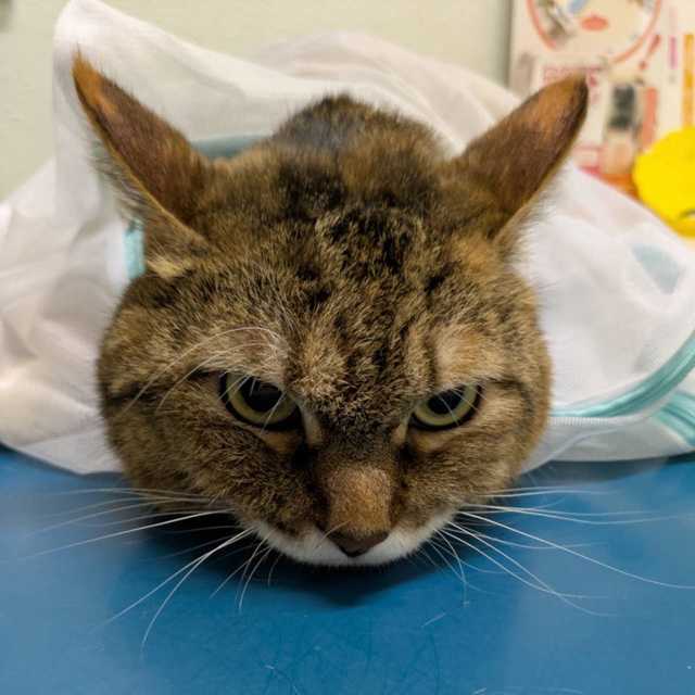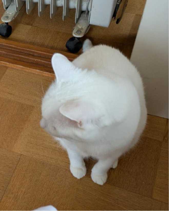 今朝はアイが痒い痒いが始まって、耳の柔らかいところが掻傷になったので病院に行って来ました。 飲み薬とミイの目の薬と爪を切ってもらいました。 今日は6.65キロでしたよ。あの子は重いし大きいから大変だったけど、車の中でも、爪切りの間もおとなしくて、じっと座って目がキョロキョロしているだけで、行きは少し鳴いたけど、帰りは一度も鳴かず、とても楽な子よ🤗ただ、重いからくたびれたわ😝もつと抵抗するかと思ったけど、されるがままでした。今日は医師がてんてこ舞いしていて、ほかの話ができなかったわ。行く前に電話した時は誰もいなかったのに、着いたら電話での問い合わせやら別の患者の猫やらで大忙しよ。出かける前、最初2階のソファにずっと寝ていたのに、車の中で獣医さんに電話して、2階に上がって来たら起きていて、私をずっと見ていました。車の中で電話したのは、どうやって聞いてるか分からないからね😆 クロベエ、ミイ、アイは2階にいたけど、リンが下にいたから、リンが聞いて教えるかもしれないでしよ😁電話する前はアイはぐぅぐぅ寝ていたのよ。 その後に上がって来たら、しっかり起きて私を監視してるのよ。 猫の勘ってすごいね🤭一度網を被せそこなって、しょうがないからテレビを見ているふりしていたら、窓のカーテンの陰に隠れたから、必死で捕まえてやっと網を被せることができたわ。でも網に入ってからは静かになって、私の胸に顔をつけていたわよ。外だから怖かったのね😁それにしても、車の中であんなにおとなしいとは思わなかったわ。クロベエなんか鳴き通しで、キャリーを壊すほどだものね。アイは3種混合の注射を小さい時に1回やっただけで、その後やってないけど、獣医さんに聞いたら、外に出ないならやらない方が良いよ、痒い痒いのある子はもっと痒くなることもあるからねと言っていたわ。だからアイは、いつもは連れて行かないで薬だけもらって来てたので、病院に行ったのは数年ぶりなのよ。車に乗ったのもね🚗5年ぶりくらいじゃないかしら?薬は同じで10日分よ。飲むと治まるから、ちょっと強い薬なのかもね。チュールに入れれば、食べるからね🤭これは、帰ってからもしばらく警戒していたアイちゃんです。じゃあね😁😸😸😸😸😸😸