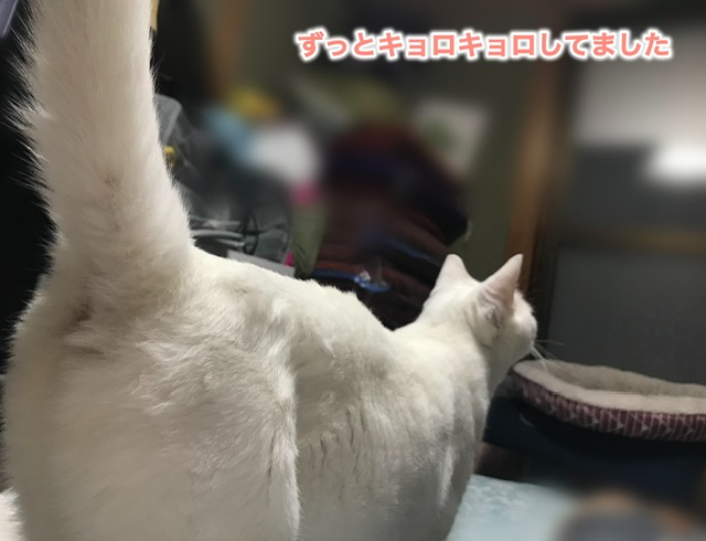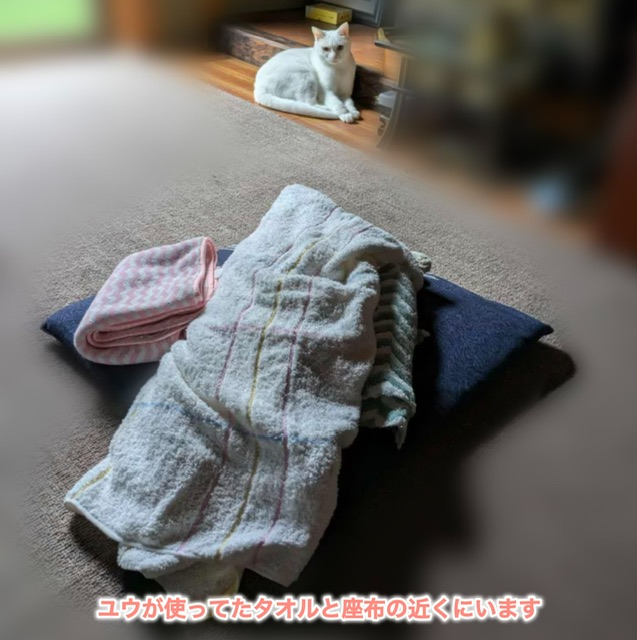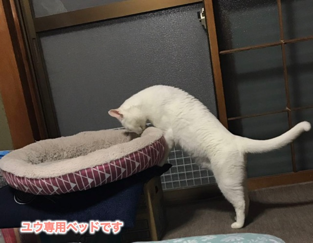 昼はいつものようにうろうろ歩いていて、夜、母が下のソファで居眠りしてたら、下のユウベッドにいなくて、2階に行ったらいつもミイとよくいたベッドの上にいたそうです。
