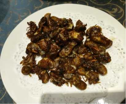 夏の時、食べるために蝉を取る人が話題になってたけど、この間、カズミからの写真に、セミの唐揚げがテーブルにあったわよ。