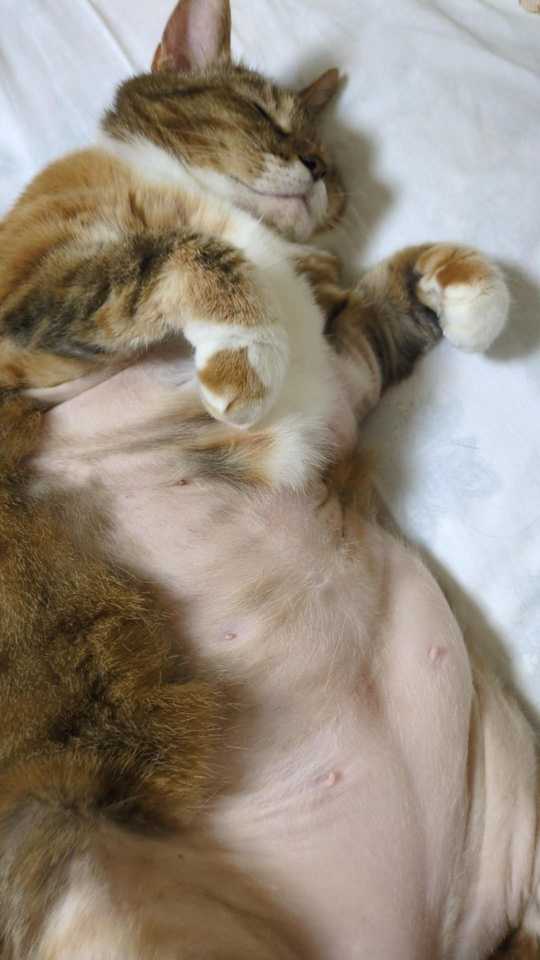 こうやって見るとお腹の毛は全くないように見えるけど、産毛みたいのはあるのよ。