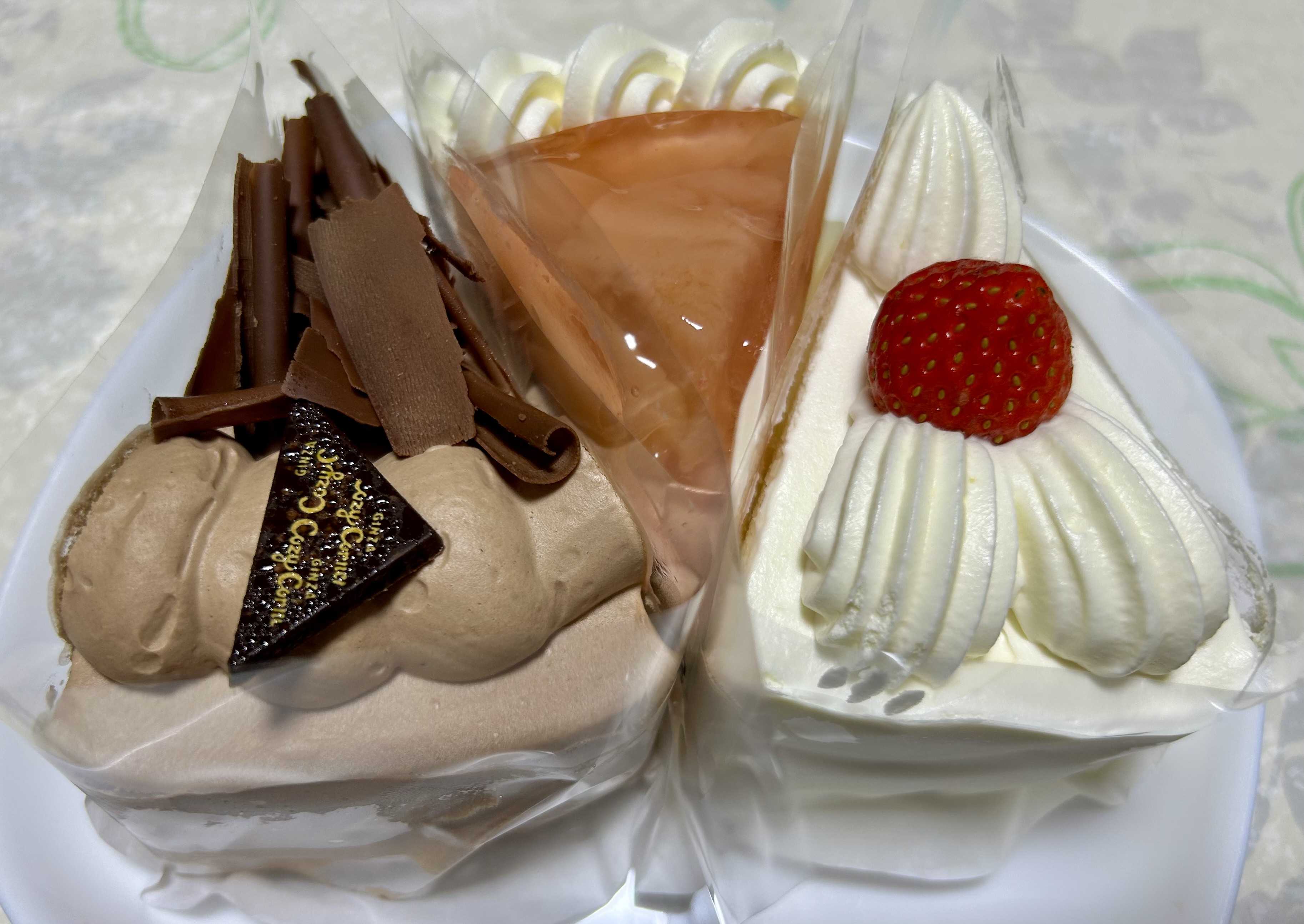 会社の帰りにコージーコーナーのケーキを3人分買ってきた!