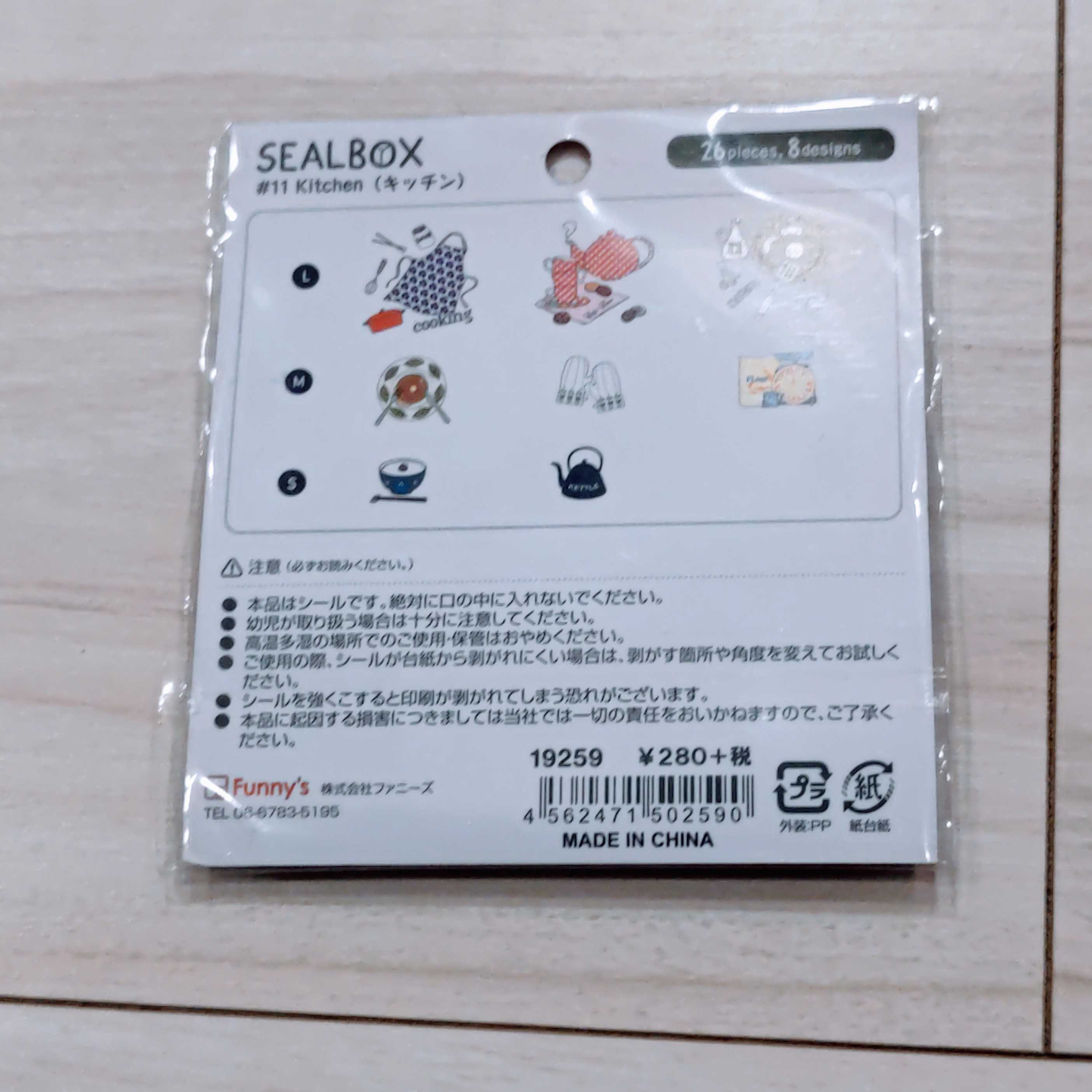 【SALE 在庫処分 20個までネコポス対応○】ファニーズ BOX付きSEAL BOX フレークシール 全26枚入 Kitchen キッチン【19259】かわいい ファンシー 手帳デコ デコシール