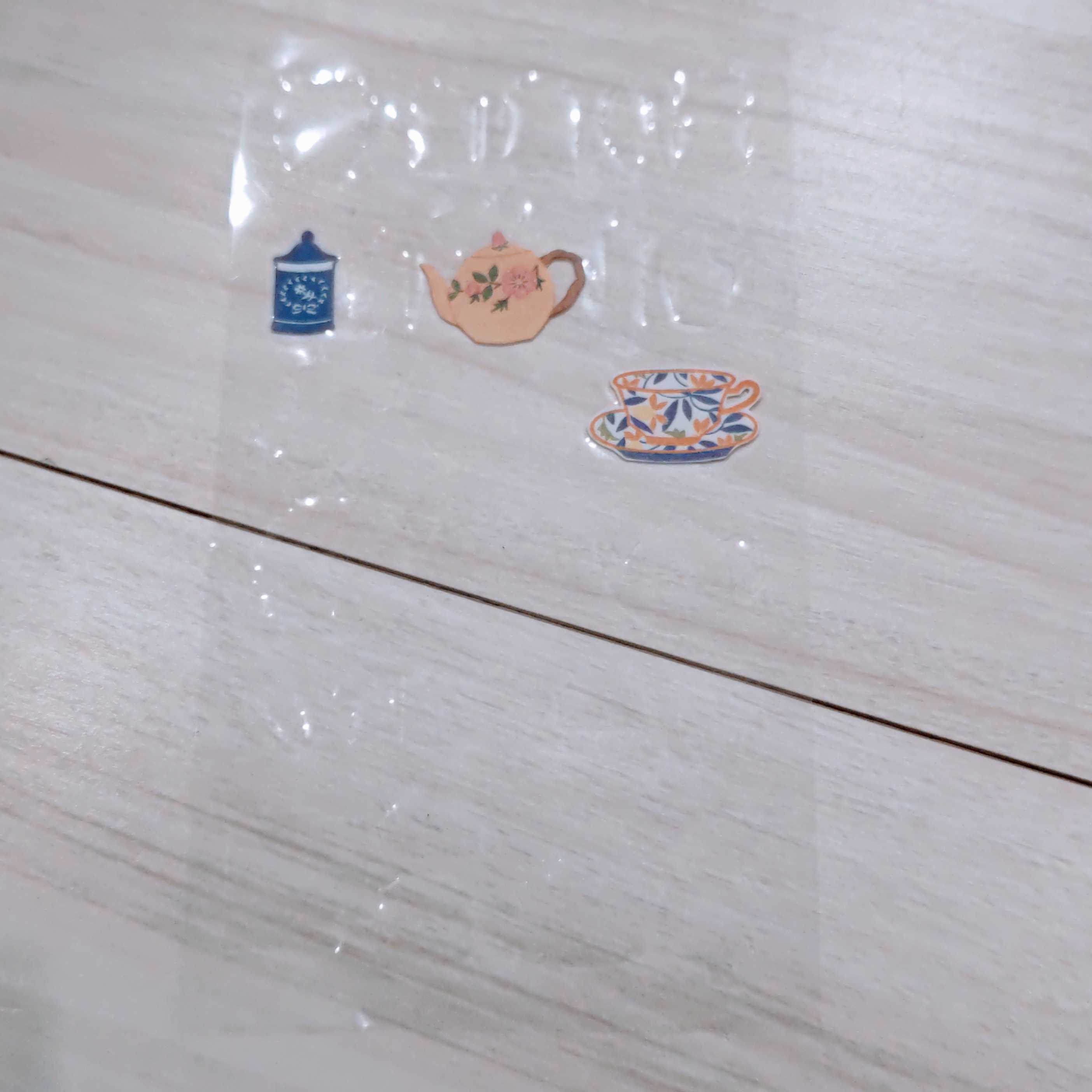エヌビー社 ビジュ シール ティータイム | クリア盛 おしゃれ かわいい 可愛い 封緘 ぷっくり 銀箔 カワイイ デコ デコレーション 大人 女の子 ケーキ デザート マカロン お茶 紅茶 ポット カップ サンドウィッチ ステッカー sticker