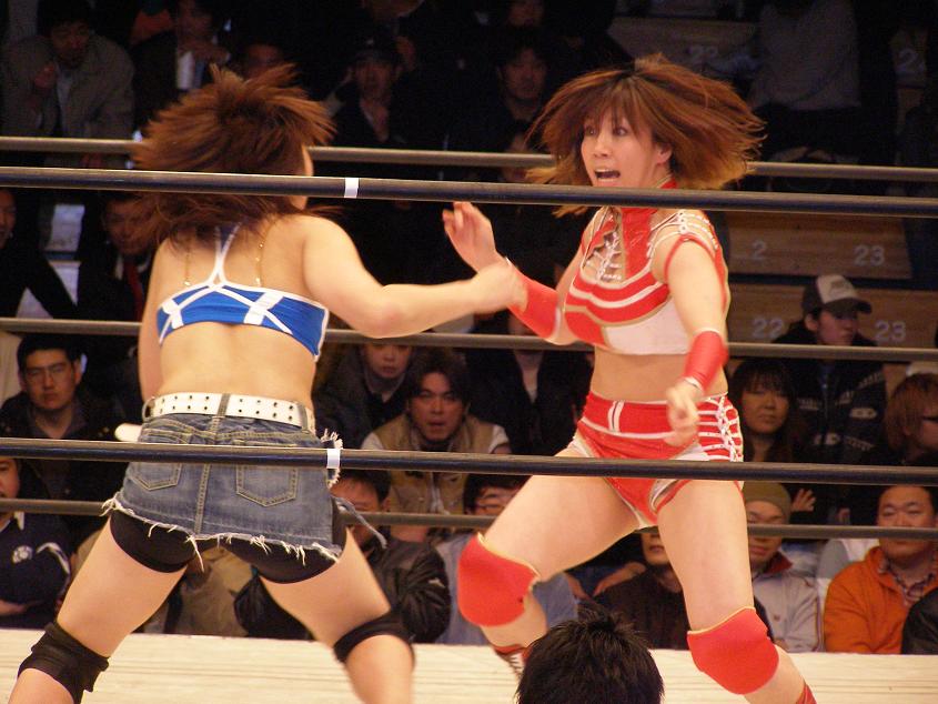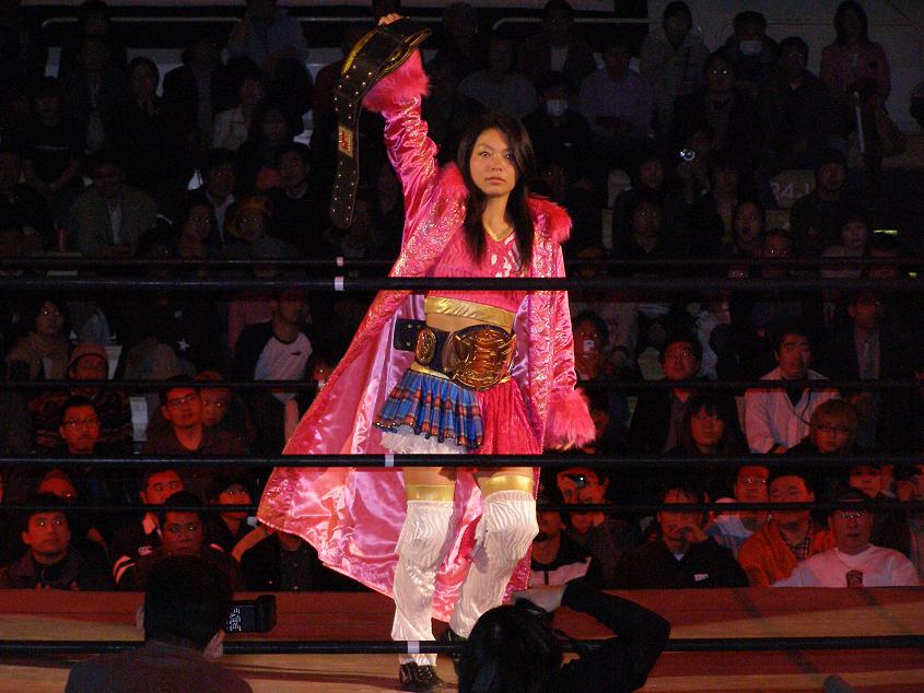 ◆NWA女子パシフィック&NEO認定シングル選手権試合60分1本勝負<王者>松尾 永遠vs<挑戦者>松本 浩代※王者・松尾、2度目の防衛戦すっかり今更な観戦記になってしまいました(TT)本当は8日の夜にしっかりと書いていたんですが、アップ直前にお釈迦にしてしまい、以降、仕事の合間に書くのも厳しい状態でした。ということで、つらつらと思うままに書いてみます。まずは、チャレンジャー・松本浩代選手について。デビュー1年半で、シングル王座に挑戦する選手って、かつての女子プロ黄金期でもそうはなかったことですよね。豊田や京子はいずれも3年目でジャパングランプリを制しブレイクしましたが、松本選手は2年でNEOステージを制し、タイトル挑戦権を得、そしてホールのメインを張りました。2年続けてのジュニア・オールスター戦開催で、女子プロ界の”若い力”というものがどんどん育って来ていることは、だいぶ広まってきたと思うのですが、実際にタイトルに挑戦し、その試合がホールのメインを張るというのはそうそう出来ることではありません。マスコミ間ではJの中島、仙女の奥田を採り上げる風潮がありましたが、この日を持って松本浩代が平成18年組のトップに立ったことは誰もが否定できない事実になっていると思われます。今度、仙女において”じゃじゃ馬トーナメント”なる若手のトーナメントが開催され、それに松本浩代選手もエントリーされていますが、団体力による結果が見え隠れしそうなので、これには出て欲しくなかったなあ。一方のチャンピオン・松尾永遠にとっては、この防衛戦までは逆風が吹いていました。前王者・田村様の影を振り切れていないというか・・・。ベルトを獲ったときが、崩れ気味のマック。王者になった後は、三田さんを除いては基本後輩相手のマッチメイク。元々が積極的にアピールする選手でもないので、新王者としてのお披露目的な試合に終始していた感は拭えません。(少なくともファンにとっては)それを”王者としての自己主張、風格がない”と捉えられ、さくらえみをして『現在の女子プロ界の中で、最も獲りやすいベルト』と称されもしましたし、中島や松本からは強烈な突き上げを食らいました。裏を返せば、それだけ田村様が偉大な王者だったということなのでしょう。その後の王者なだけに、松尾選手とすれば厳しい状態だったのでしょうね。ただ、ベルトを獲る前を考えてみると、少なくとも私個人的には『松尾にベルトを巻かせることにより、より一層の成長を期待したい』と思っていました。目に見えての成長こそないものの、いつの間にか立派な選手に育ってくれた、というのが若手の頃の松尾永遠でしたし、きっとそれは王者になっての松尾永遠も一緒なのでしょう。気づいてみれば、ベルトの似合うチャンピオンになっていると思いますし、その一戦一戦の積み重ねが王者・松尾を育てているのです。いきなり田村様を求めるのは酷。松尾永遠には松尾永遠のチャンピオン・ロードがあるのです。ドラゴン・スープレックスにて、平成18年組の頭を倒し、2度目の防衛を果たした王者が、王者として初めての自己主張を行いました。5月5日・後楽園ホールでの防衛戦の相手に、NEO総大将・井上京子を指名。松尾「京子さんが帰ってきたときに”NEOは変わったな”と思わせなければならない。 それには私がチャンピオンでいることが、一番京子さんに”変わった”と 思わせることが出来る」その思いで京子不在のNEOを松尾が支えてきたのは、NEOファン誰もが認めるところでしょう。一方の京子にも異存のあるはずがなく、5月5日のホールのメインは松尾vs京子の2冠戦で正式決定しています。そして、ブログ更新をサボっている間(爆)既に16日のキネマで京子復帰後初の松尾との絡みがタッグにて実現(松尾&勇気vs京子&松本)し、松尾が京子からフォール勝ちをスコアしています。王者として京子の挑戦を受けることにより、松尾が今まで以上の急成長を遂げそうです。井上京子の大きさというものを、改めて感じますね。