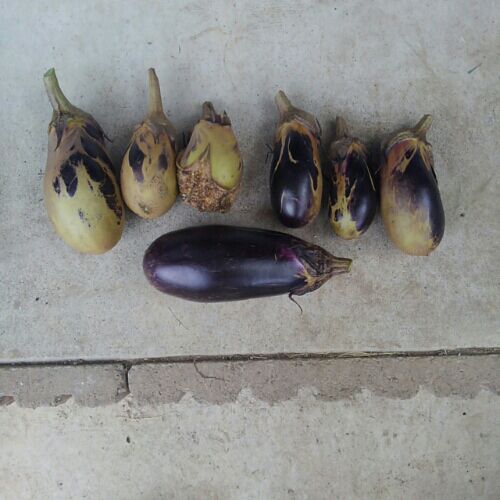 茄子が白くて固くなった。 種がむき出しもある。 このところ雨ばかりだったから日商不足かとおもったら、 「水不足」だって。 どしゃ降りでいっきに水やったり(不可抗力)やらなかったりで こうなるんだって。 難しいね。