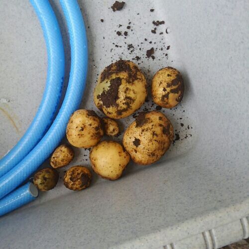 植えた覚えのないじゃがいも。 去年の残りかな? 思いきって掘り出してみたら結構ちゃんとできていた。
