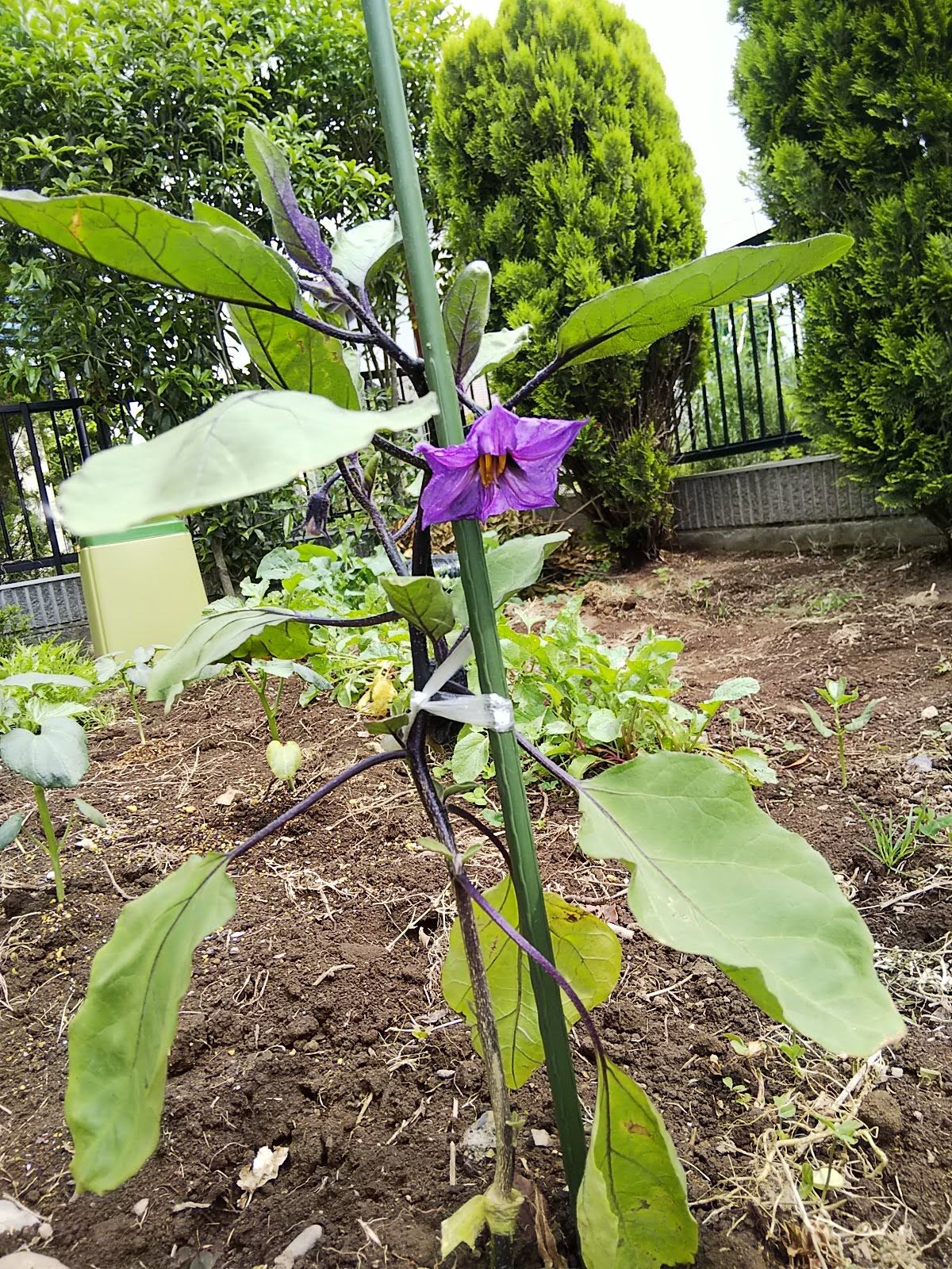ナス育ってきているよ。パソコンから投稿すると、画像の回転したいんだけど、どうやったらいいかわからんね。あと、少し小さくしたいんだけど。