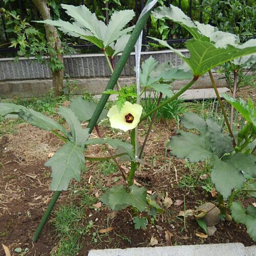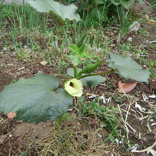 なす。 遅くなってから植えたけど、花が咲いたし、根がついたね。 あー、楽しみー。 おくらはぼちぼち収穫できているよ。 小さく育ちの悪いおくらからはやはりとれないね。