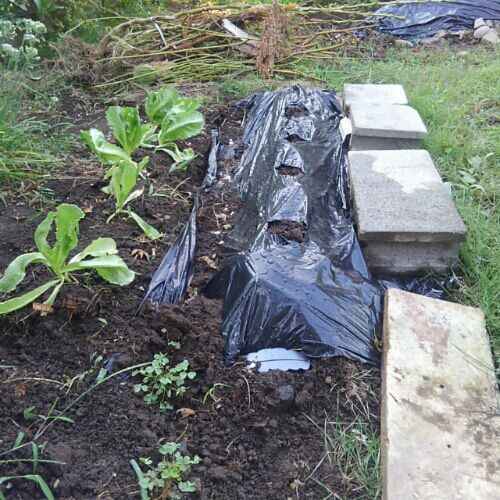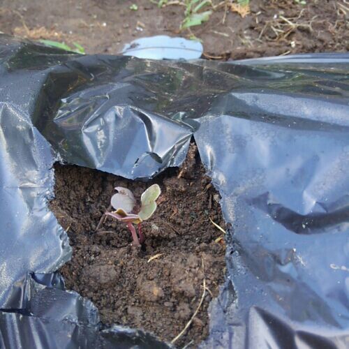 2年目。 去年の残りの種。 出るといいな。 去年の反省から今年はマルチを敷いた。 【マルチ】 ワイド黒マルチ 135cm 穴なし (10mまでメール便配送商品) 10m未満の場合、送料を再計算します! 穴なしにしちゃったからハサミで切った。