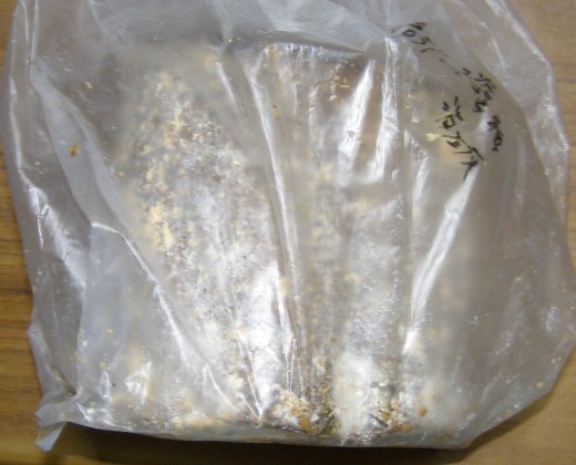 こちらは同じ日に消石灰水に浸け、同じ日に接種し、フィルター付き培養袋へ入れ、途中まで室温で、途中から温室に入れていたカシの木です。