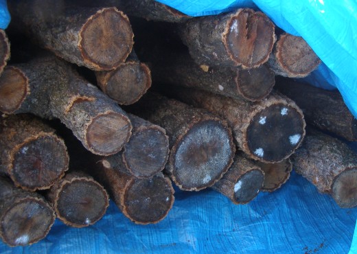 3月19日と26日に消石灰水に浸けてから植菌した低中温種の原木です。