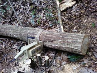 その幹のぶぶんを玉伐りし、運び出せるようにしてきました。