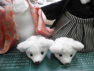 色打ちかけができあがりました。只今、袴を製作中。超スピードUPしないと、、、3月3日に合いませんウエディング完成品 高砂くまさん(立ったタイプ)...価格:15,120円(税込、送料込)★商品は違うけど、完成品はお高いです婚礼ベア・彩の宴2点1組H431-098価格:3,276円(税込、送料別)まきんこが作っているのはこちらです。