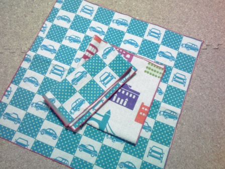 約42cm角に切った布を 巻きロックで端処理しました。手持ちの巻きロック用ウーリー糸の色が 白と赤。赤を使いました。ベージュとかグレーとかの方が合うような気がしますが、、制作時間は1枚約1分もう少し枚数を増やしまーす新小学生布製品の期限が今度の日曜日。がんばります人気のni-coシリーズ、2011新柄発売です!★50cm単位続けてカット★echino ni-co2011car box(...価格:682円(税込、送料別)古家悦子さんデザインエチノニコ2011年新作【echino ni-co2011】London ロンドン価格:682円(税込、送料別)20色から選べますウーリーロックミシン糸 33g 約1300m巻価格:330円(税込、送料別)