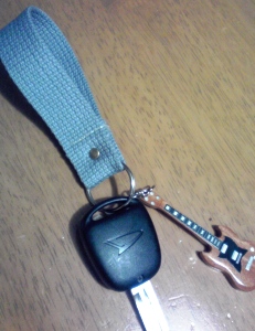 バンドを折って縫って カシメで締めた だけ超簡単タイ チェンマイ土産の 木製ギターを付けましたバンドは 大阪サンセイで購入。カシメは手芸ナカムラで購入 カシメ(小・渋金)30個打具付 足長さ6mm