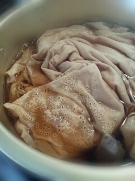 生成り色の綿ボーダーレース布を紅茶で染めてペチパンツを作る予定です布:手芸のナカムラで2m1500円で購入 09/04【12回目】再入荷!*片耳スカラップにリボンと花の刺繍*ボーダーレース/#10401価格:98円(税込、送料別)