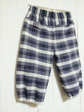 ポルカドロップスさんの本より ニットパンツこのパンツは少し大きめなのでサイズ110で作りました。サイドポケット省略です【送料無料】かんたんすっきりおんなの子服おとこの子服 [ ポルカドロップス ]価格:1,365円(税込、送料別)布:起毛チェック イオン手芸店で昨年110cm400円で購入