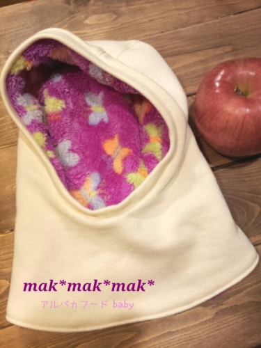 アルパカフードの型紙70%縮小で作りました。4ヶ月のgirl babyちゃん用髪の毛が少ない赤ちゃんは冬、寒いハズ帽子は、ずれて脱げたり目が隠れたり…このアルパカフードはスッポリ包まれて暖かそうでした大きさ比較で大きめなリンゴを置いてみました型紙 ボルカドロップスさんのアルパカフード布 大塚屋両面ボアでもカワイイんじゃないかな♪11月21日 超大人気で、なんと358回目の再入荷!すごい人気です!!ふわふわで柔らか〜♪超大人気...価格:840円(税込、送料別)