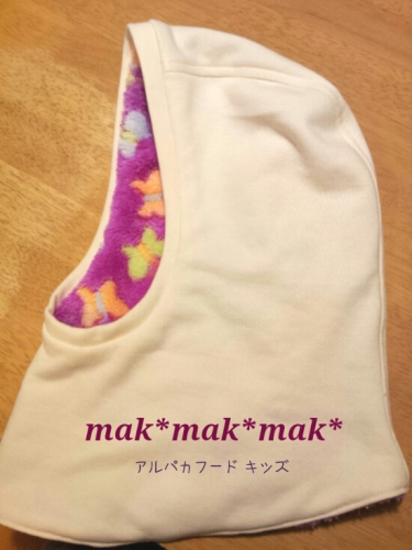 昨日のアルパカフードbabyのおねえちゃん用(5才)に型紙85%縮小で作りました!姉妹でお揃い明日は友達とミシン会!手より口が動くのは確実だ