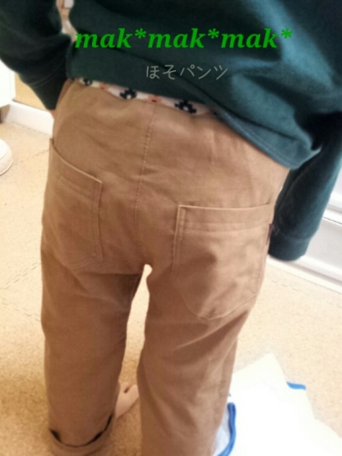 何枚目かわからないくらい作っているポルカドロップスさんの出版本よりほそパンツ。脇の縫い代1,5cmのところ1cmで縫いました。後ろのヨークを省略したらなんだかマヌケになっちゃいましたステッチだけでも入れればよかったです。布は先日のまきんこのハーフパンツ(その記事はコチラ★)と同じお揃いです♪【送料無料】かんたんすっきりおんなの子服おとこの子服 [ polka drops ]価格:1,365円(税込、送料込)本日のミシン会。予想通りまきんこはリュックのポケット部分の完成で終了…布ナプと折りたたみティッシュケースを作ったお友達は完成したので達成感アリアリ。よかった!そして、手芸部設立まきんこ、顧問に認定されちゃいました部員2人。楽しく活動します
