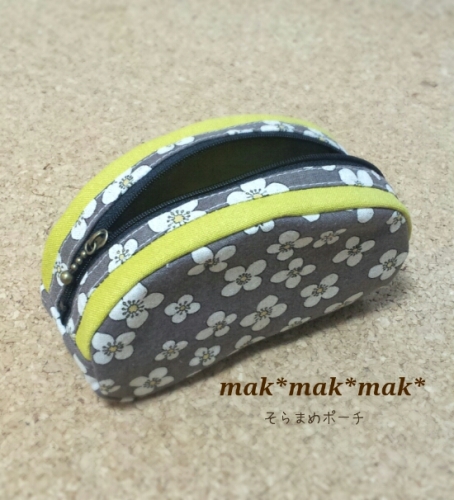 カーペンターバッグを作ったハギレでそらまめポーチを久しぶりに作りました。カーブの縫い目が真っ直ぐにならない